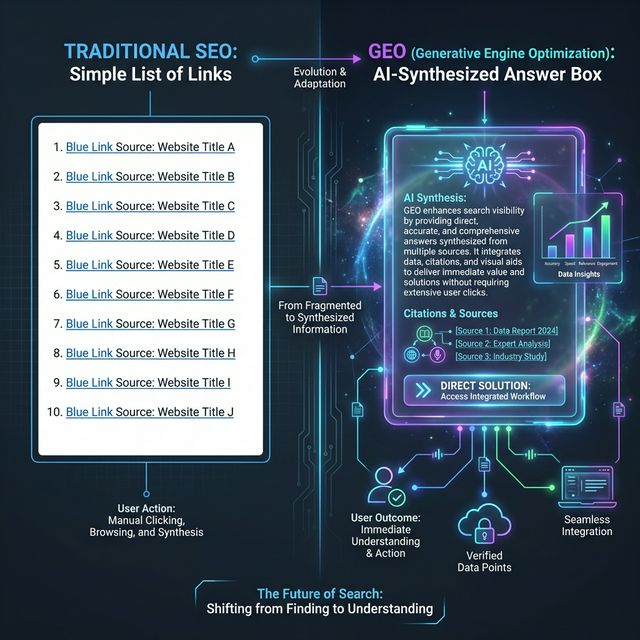 A Generative Engine Optimization (GEO) definíciója szerint a tartalom olyan technikai és strukturális optimalizálása, amely lehetővé teszi a generatív AI modellek (mint a Gemini, Claude, SearchGPT) számára az információk pontos kinyerését, értelmezését és forrásként való megjelölését. Míg a SEO lényege a *rangsorolás* volt egy listában, a GEO lényege a *beépülés* egy generált szövegbe.