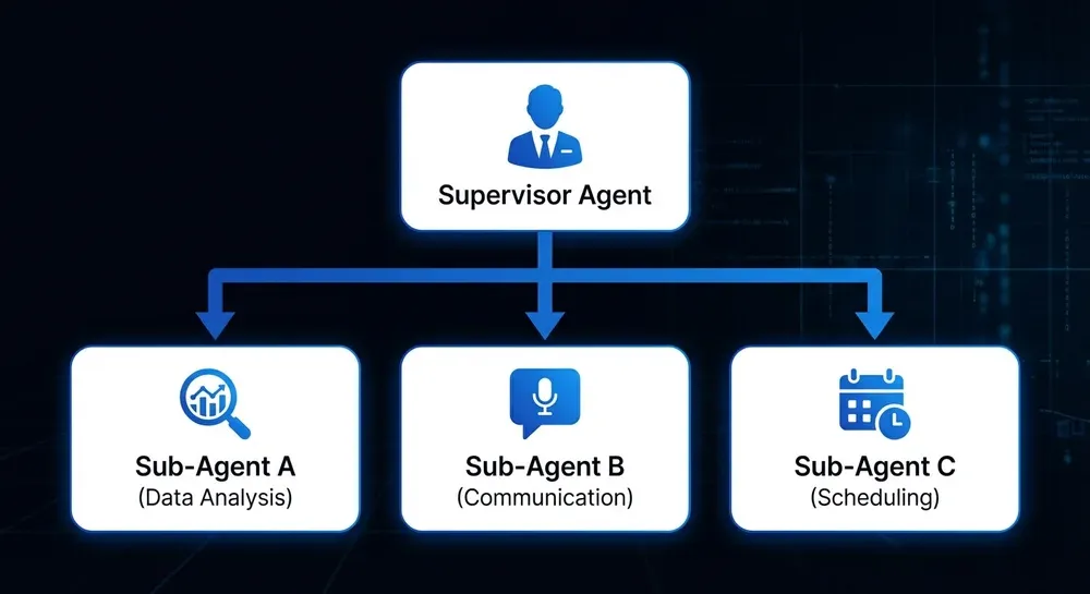 A monolitikus rendszerek hiányosságaira válaszul egy kifinomultabb paradigma jelent meg: a felügyelő-alügynök modell. Ez az architektúra az emberi szervezeti struktúrákból merít ihletet, ahol egy menedzser egy szakértői csapatot felügyel. Ebben a modellben egy magas szintű "felügyelő" ügynök felelős egy összetett cél kisebb, kezelhető részfeladatokra bontásáért. Ezután ezeket a feladatokat specializált "alügynököknek" delegálja, amelyeket mindegyiket egy-egy specifikus funkció magas szintű elvégzésére terveztek és képeztek ki.